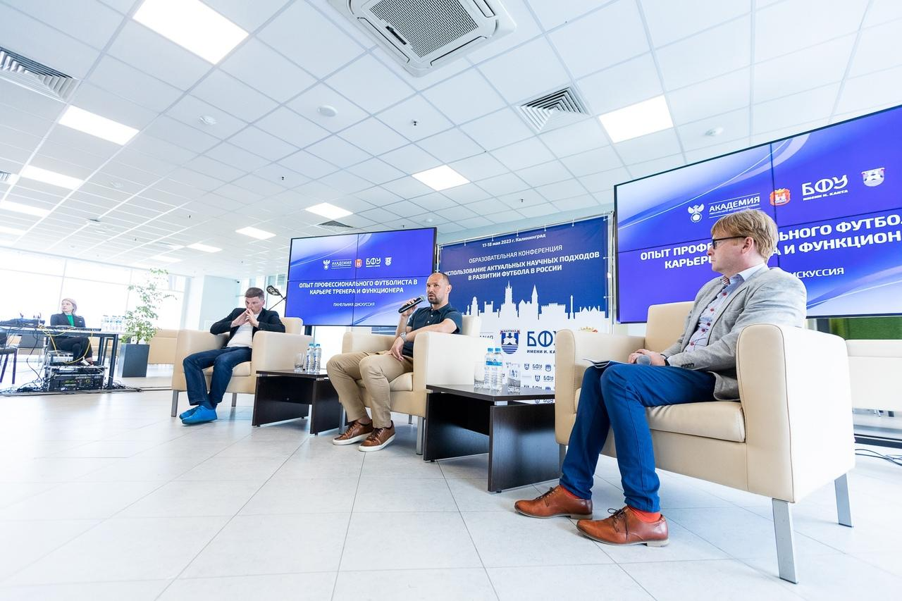 17 и 18 мая на стадионе «Калининград Арена» состоялась образовательная конференция РФС «Использование актуальных научных подходов в развитии футбола в России». Она включала в себя теоретические и практические занятия для тренеров и судей. Арбитры занимались под руководством инструкторов Академии РФС – Виталия Мешкова, Евгения Турбина и представителя департамента судейства РФС Вадима Черепанова. В том числе, были детально разобраны основы работы системы VAR и вопросы физической подготовки.